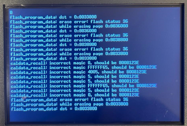 I've discovered that the is a problem saving calibration data, a problem with flash writing appears,