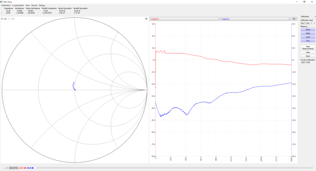 I am doing S21 and S11 measurements with a plus4 on a Noolectric LANA and am seeing strange results. The bottom graph shows the results port1 connected to the input and port 2 connected to the output. I used 12" cables and calibrated at the end of the cables. This results in a ripple on the S21 with the average less than 10 dB. The top graph has added a 20 dB attenuator between the port 1 cable and the input. The ripple only at the lowest frequencies and the S21 value starts at about 27 dB and tapers off around 16 dB at 2 GHz, taking the 20 dB attenuator into account. This is more in line with the part spec. I am trying to understand what is causing the incorrect S21 values without the attenuator. I tried adding extra cable length to the input and varied the input power from -30 to 0 dBm, these made no discernable difference in either case. I thought it might re related to the S11 value, but neither the S21 value nor the ripple rate or magnitude seem to correlate in the second graph. Also, I see similar results when I drive the input with a Pluto. Any ideas?