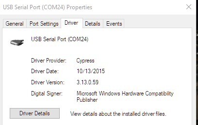 I'm including images of my Device Manager view of the emulated serial port in case that could be part of the problem.